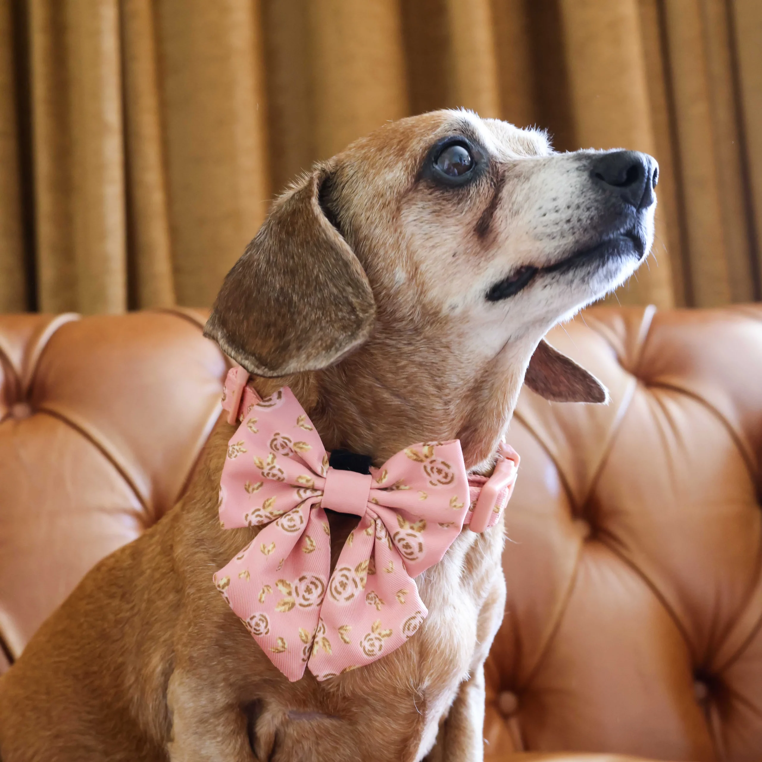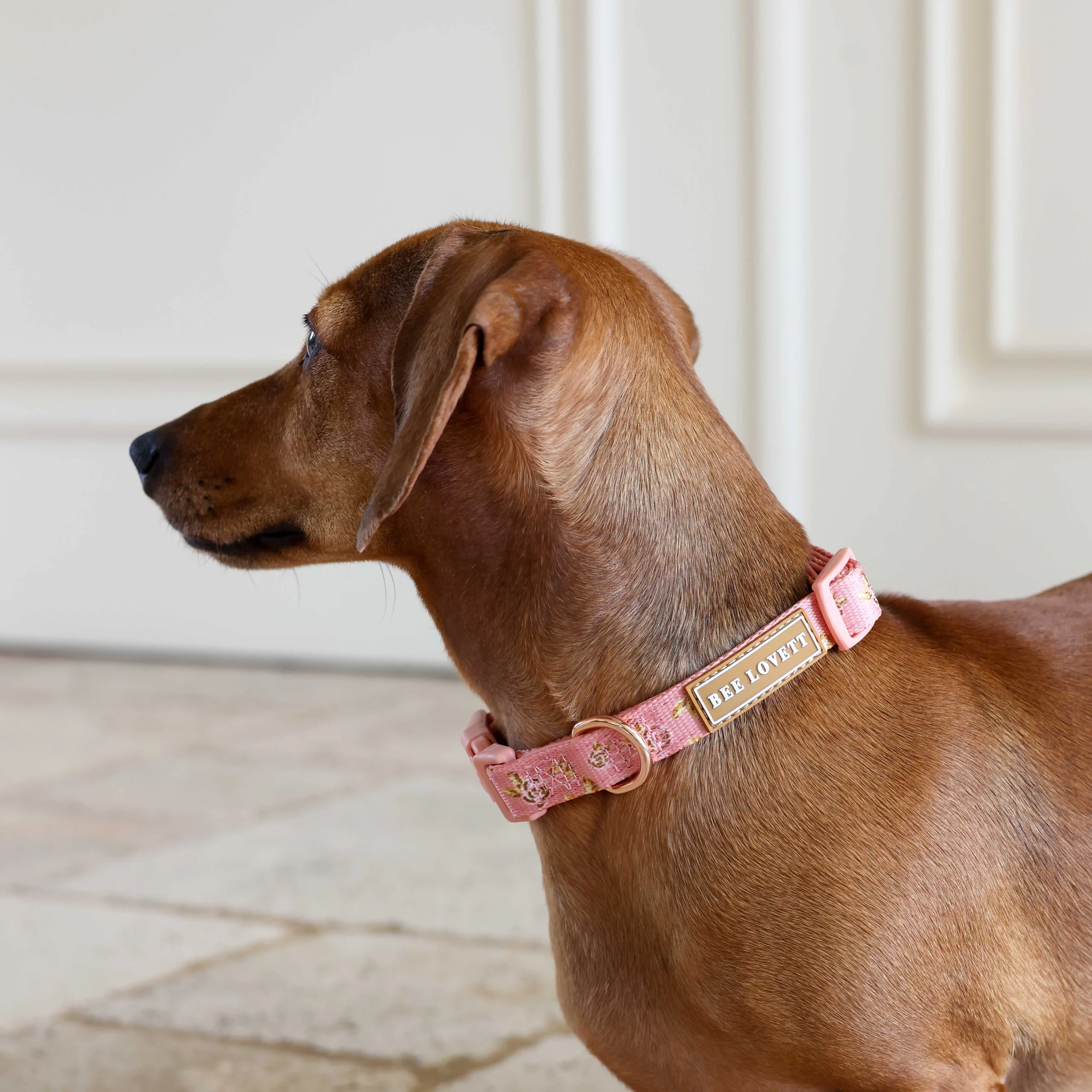 The La Vie en Rose collar offers sophisticated rose accents and rose gold hardware for a distinctive, elegant style.